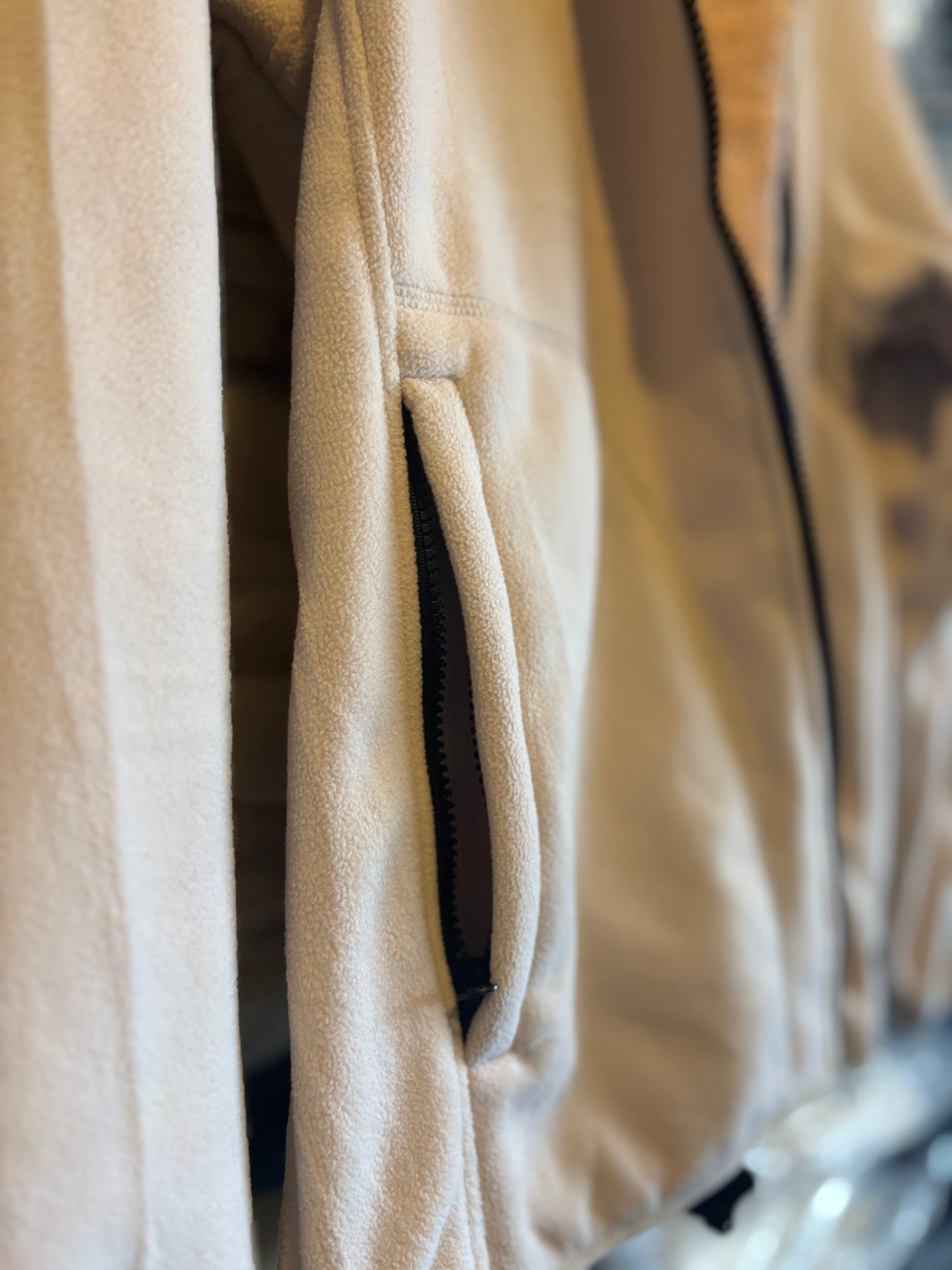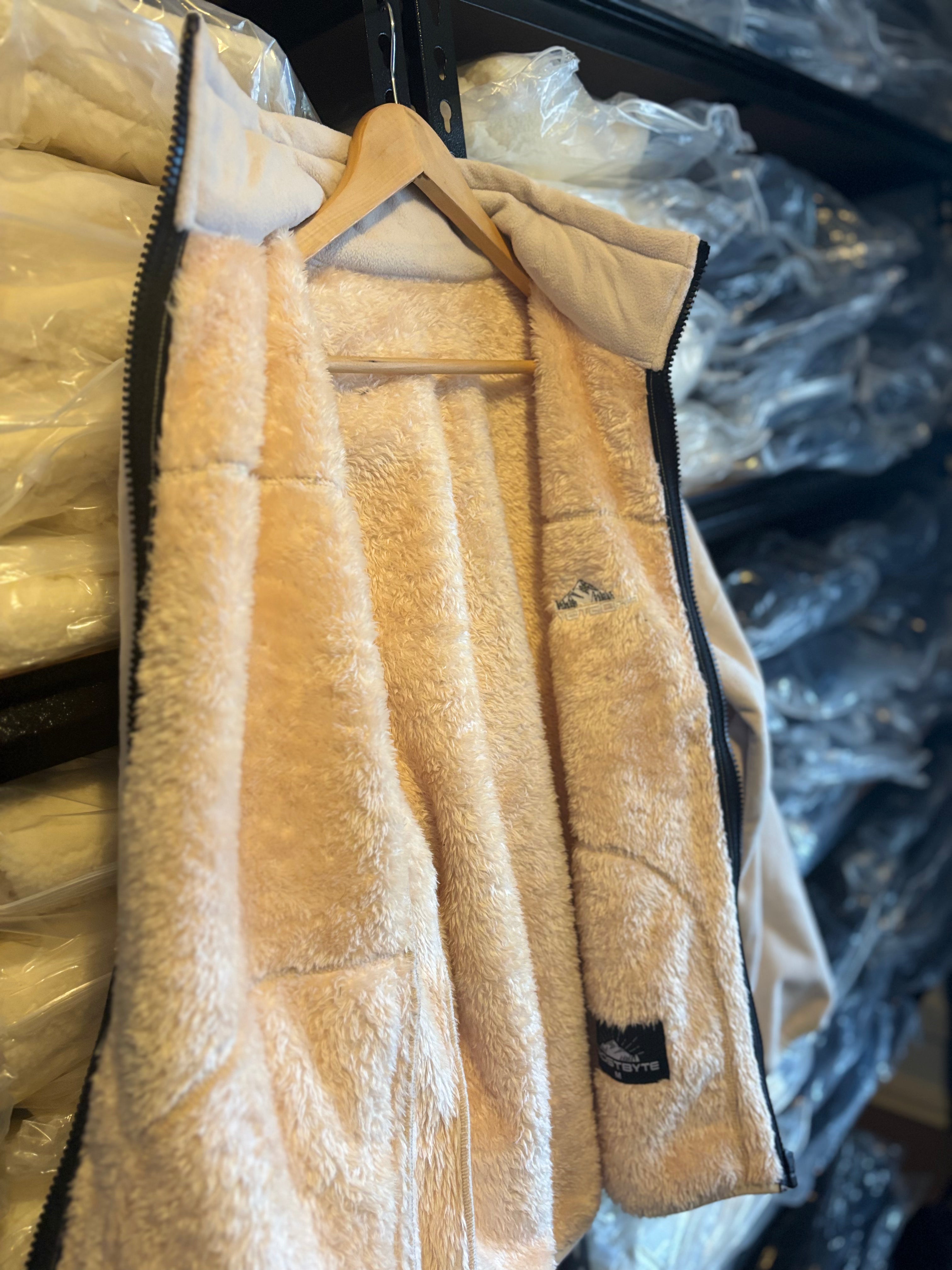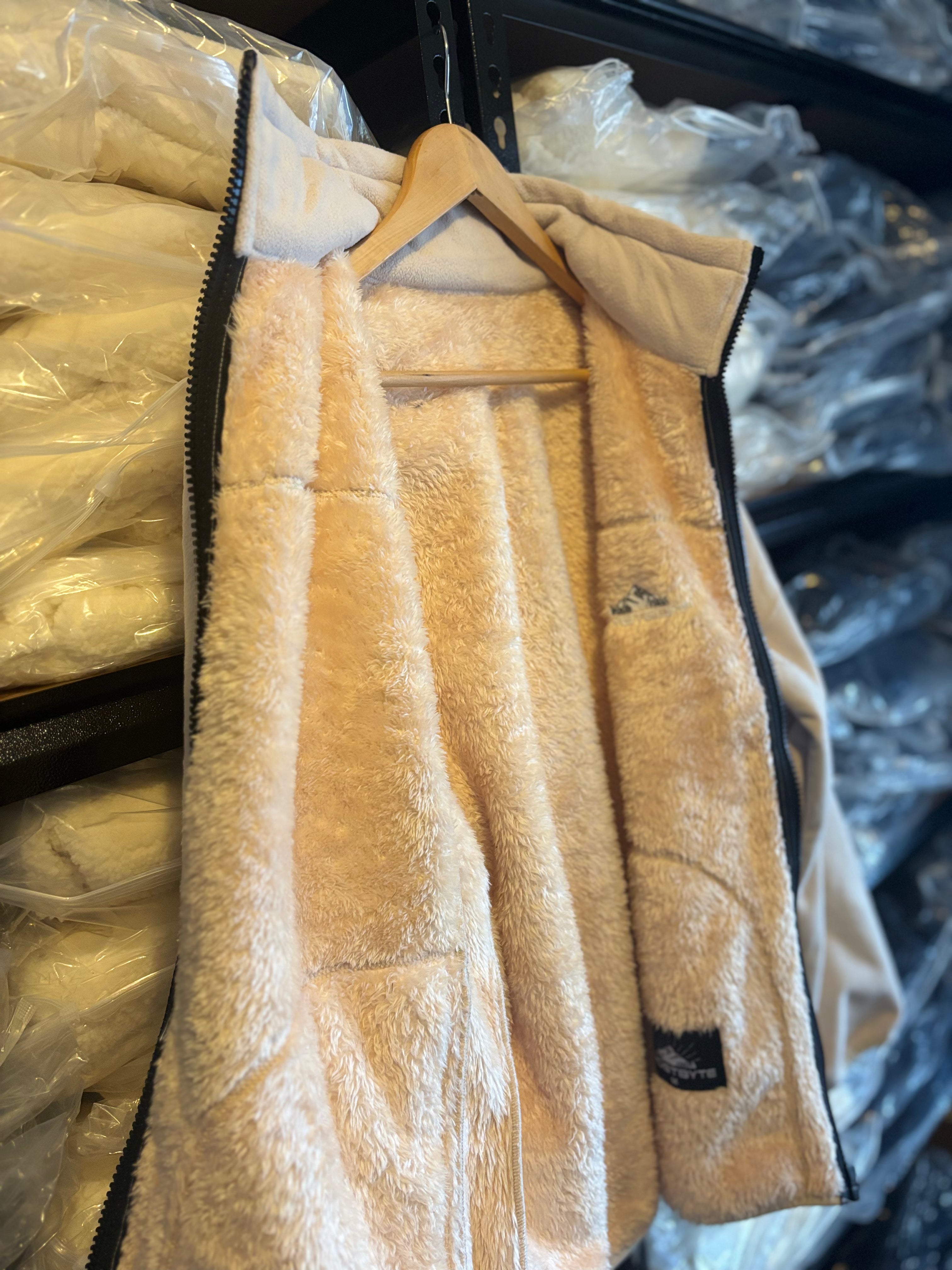 The Cream Fluff Fleece offers exceptional warmth thanks to its plush, fluffy interior that provides superior insulation. This fleece is designed to trap heat efficiently while maintaining breathability, ensuring comfort in cooler conditions. Its soft texture enhances wearability for extended periods, making it an ideal choice for layering in outdoor or casual settings.