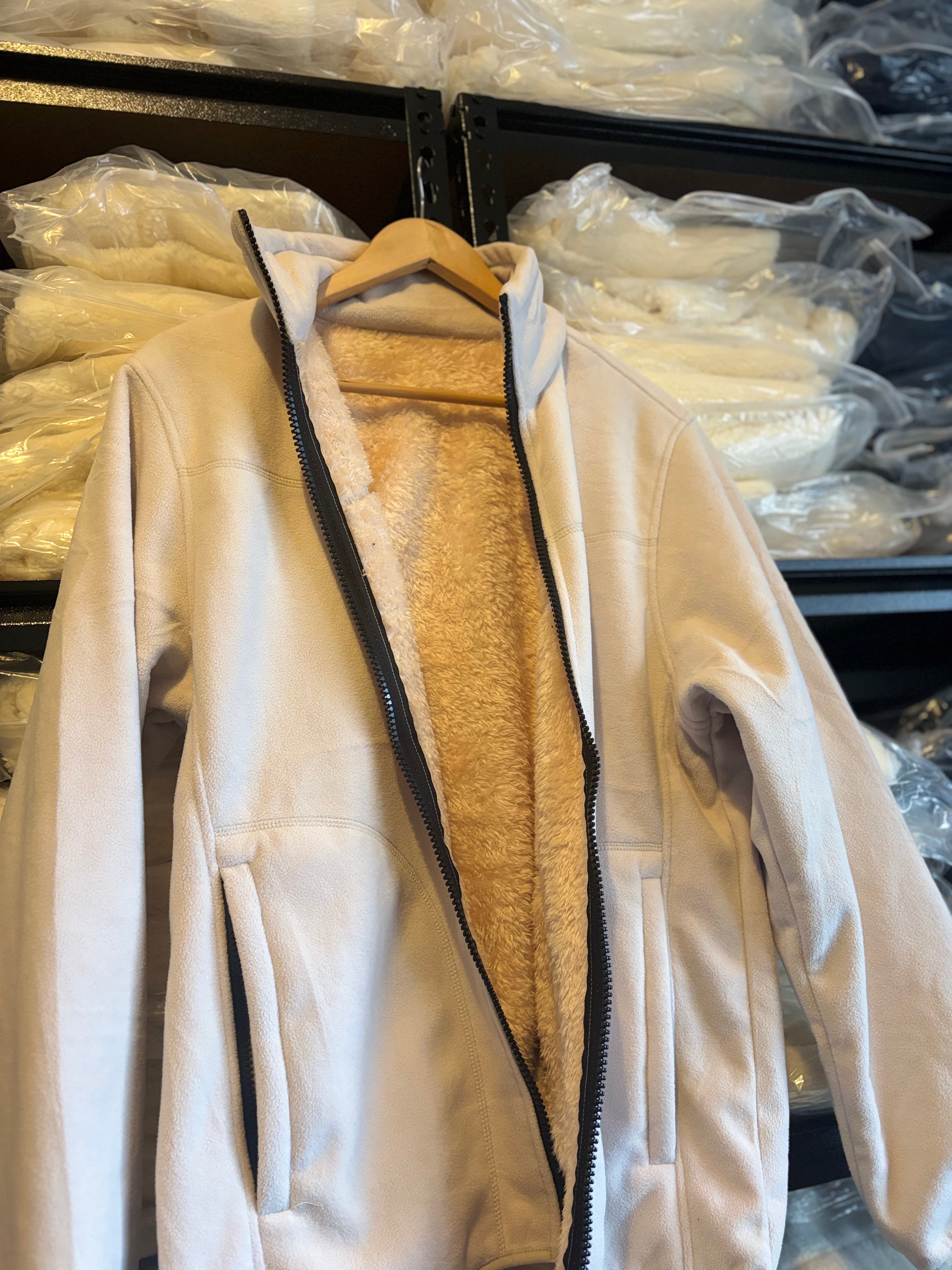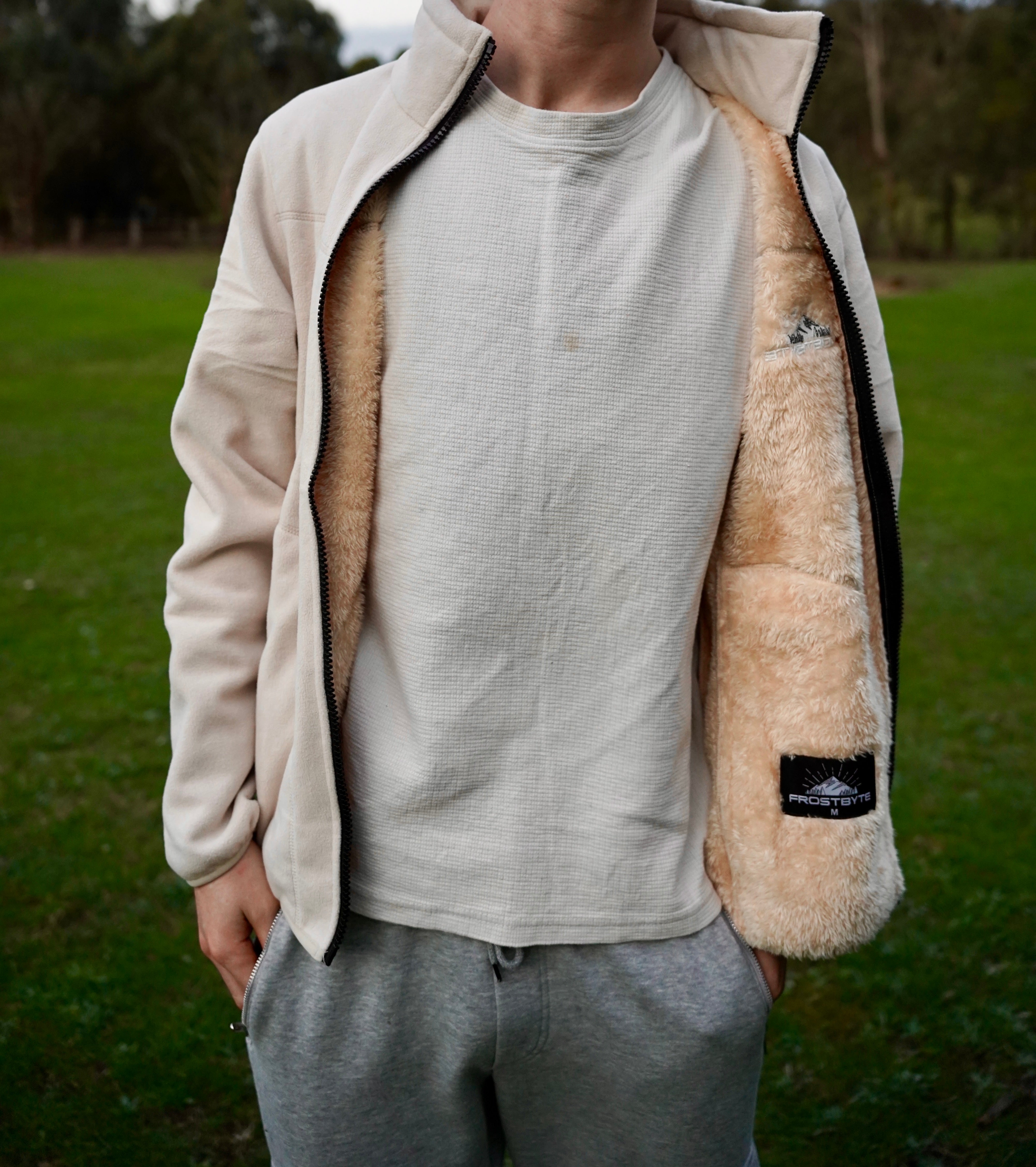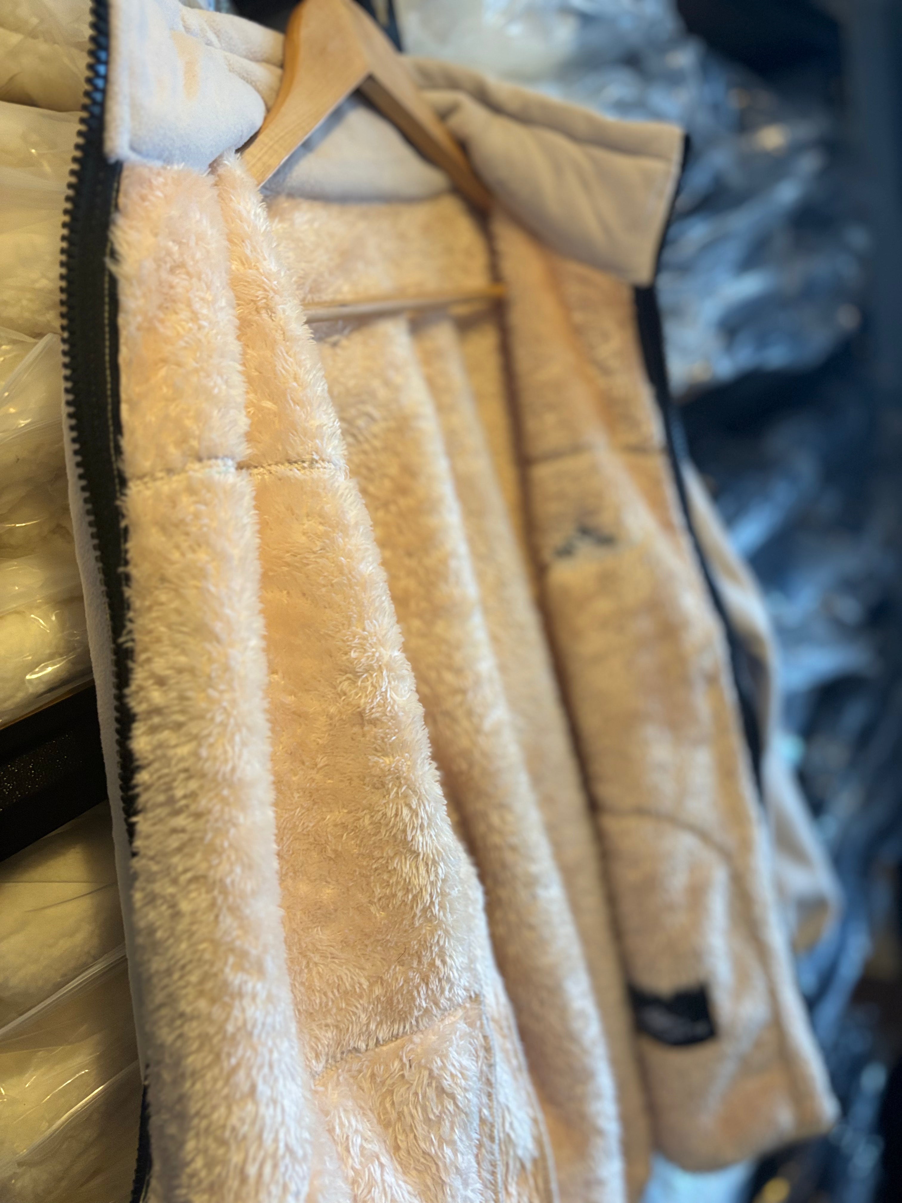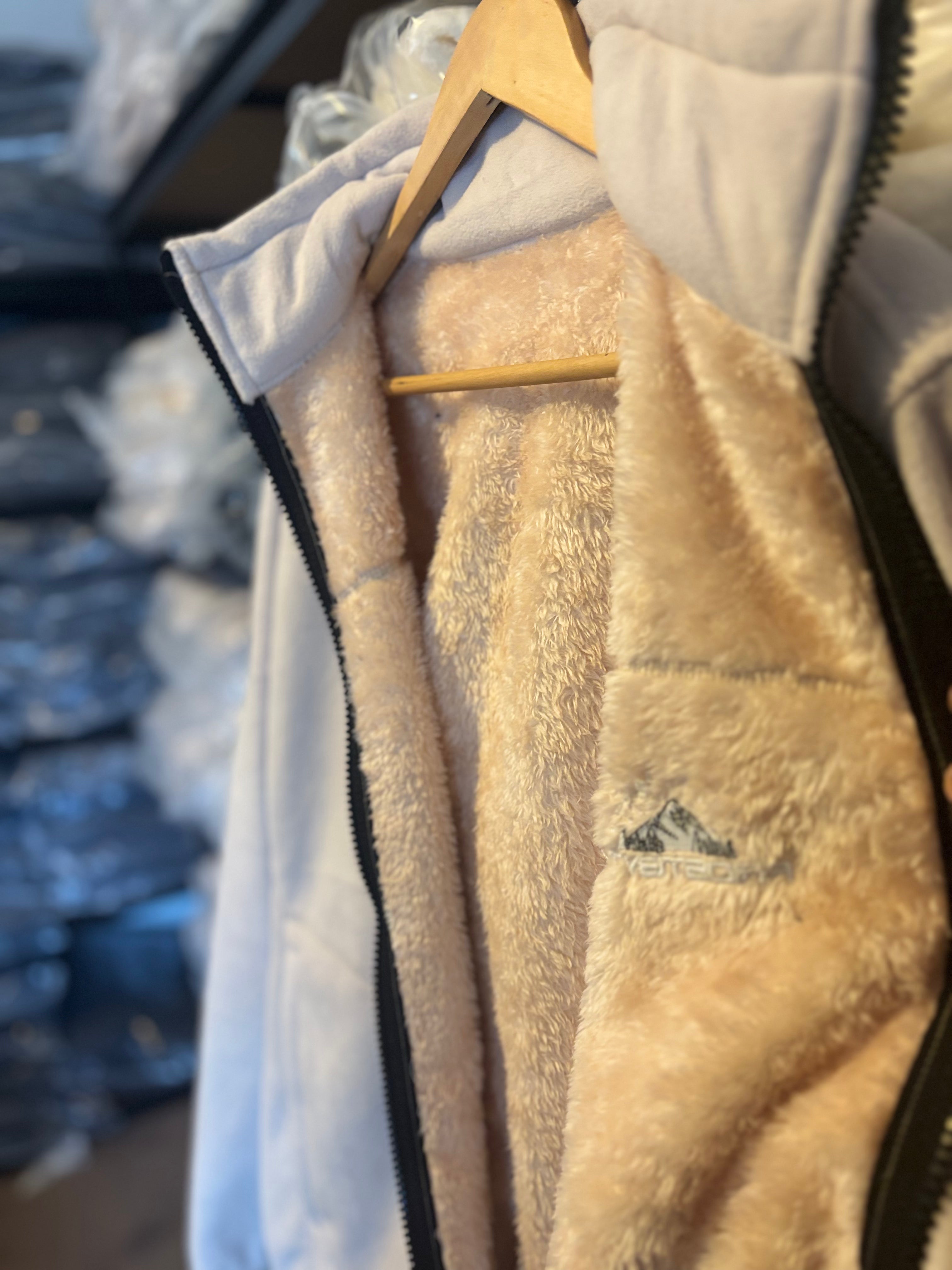 The Cream Fluff Fleece offers exceptional warmth thanks to its plush, fluffy interior that provides superior insulation. This fleece is designed to trap heat efficiently while maintaining breathability, ensuring comfort in cooler conditions. Its soft texture enhances wearability for extended periods, making it an ideal choice for layering in outdoor or casual settings.